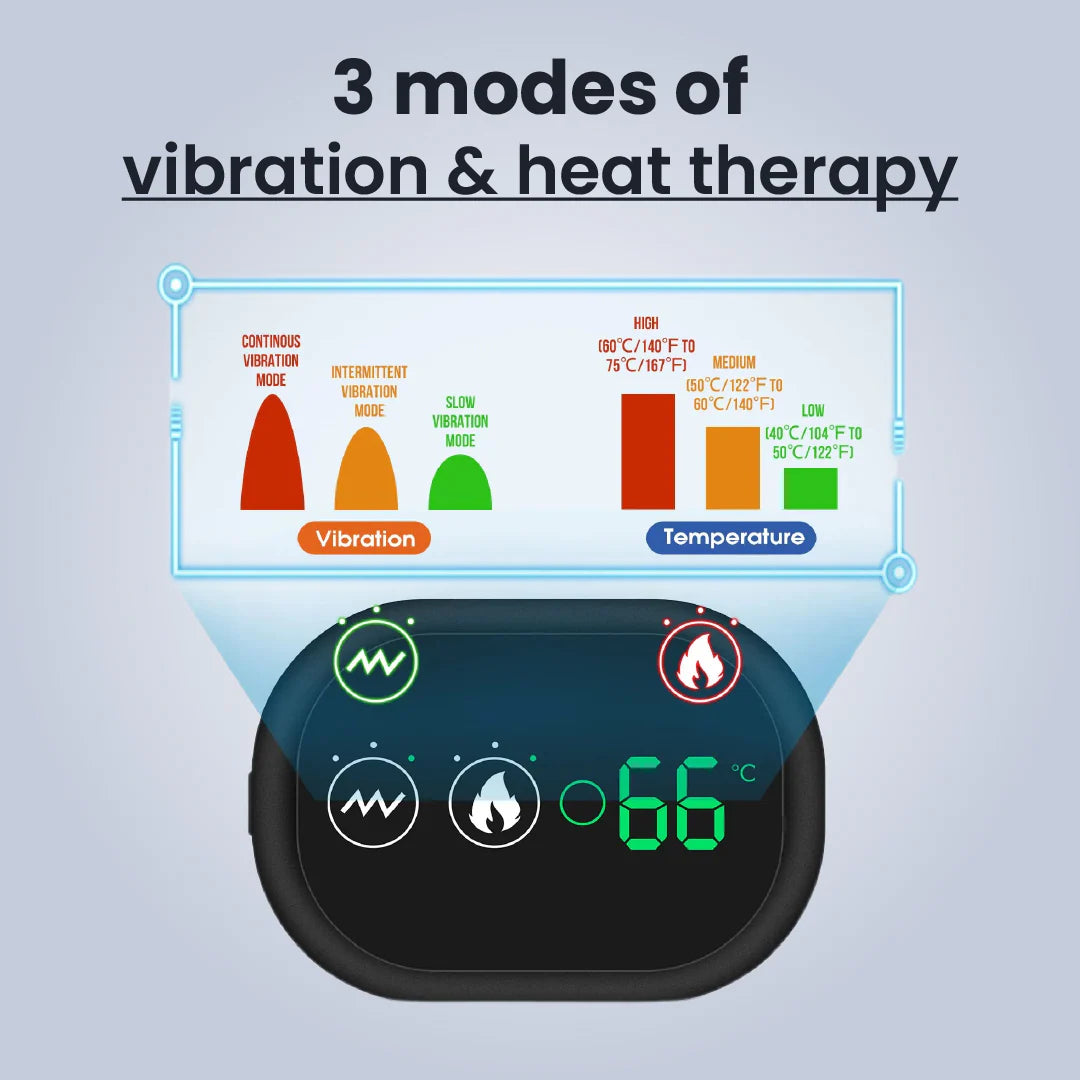 3-in-1 therapy (Vibration, Heat, Compression) |